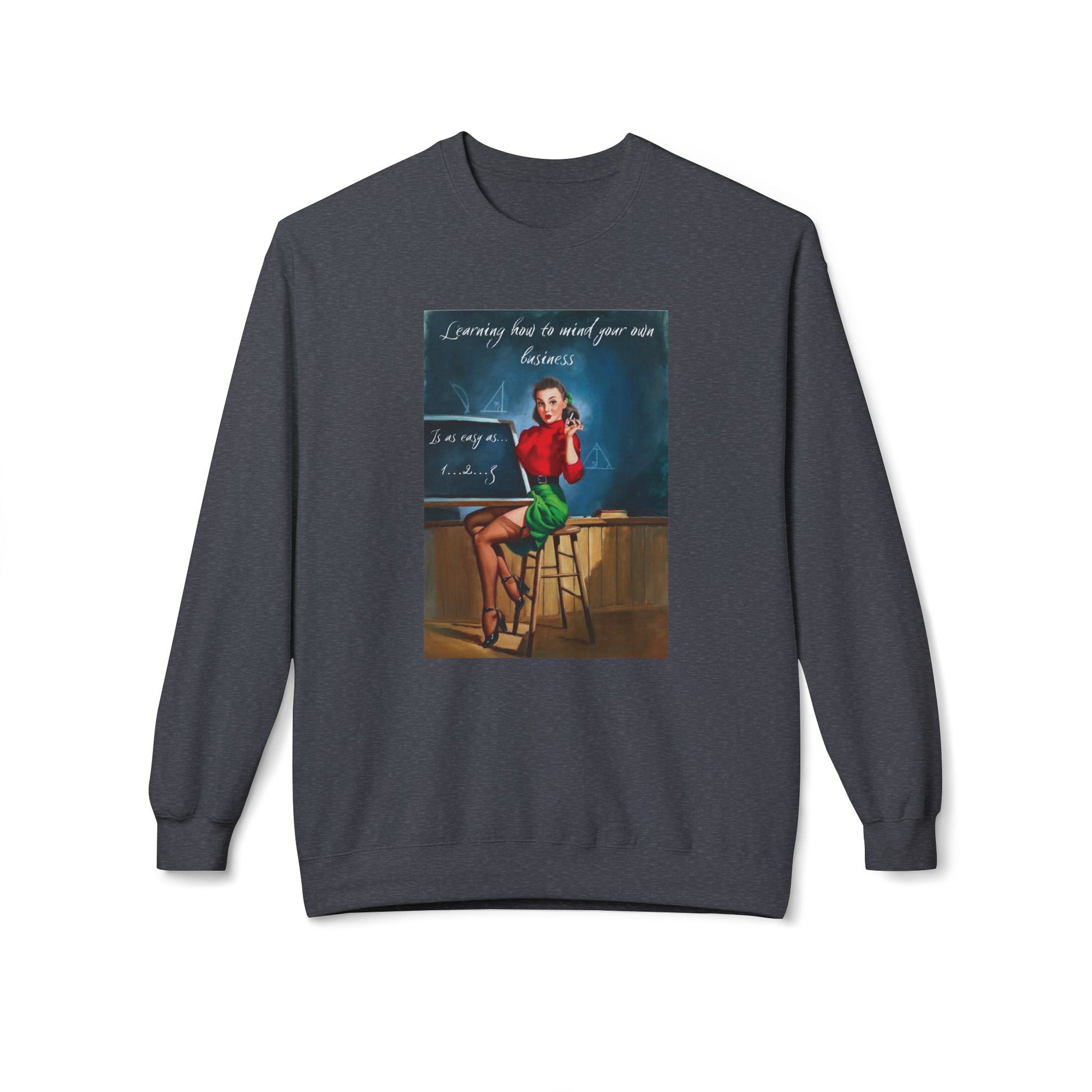 Unisex Midweight Softstyle Fleece Crewneck Vintage Sweatshirt "Learning How to Mind Your Own Business"